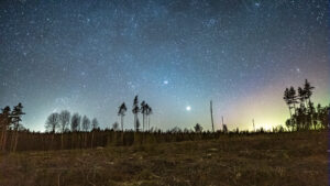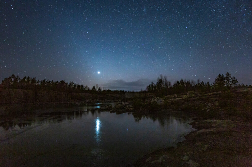 Elämäni kuumottavin reissu. Ajoin leinmäelle koppaamaan venuksen ja plejadeja. Samalla reissulla pääsin todistamaan susilauman ääntelyä lyhyen välimatkan päästä. Jo kuvauspaikalle saavuttuani kuului ulvontaa Satakunnan puolelta, sitten idän suunnalta ja loput lännestä. Lauman edetessä kuului susien välinen kommunikaatio paremmin kuin hyvin.