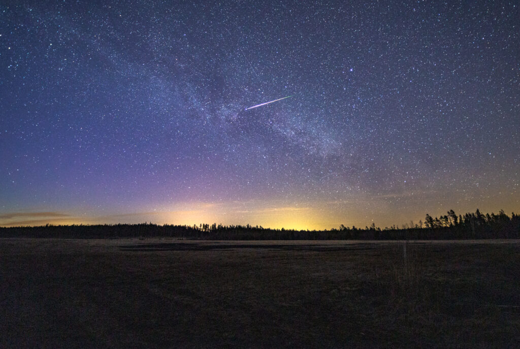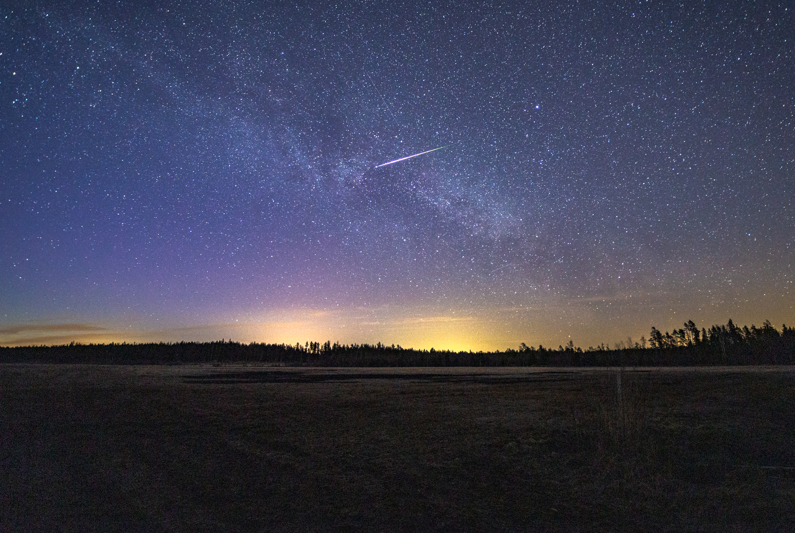 Olin monena iltana joutunut pettymyksekseni toteamaan, että puolilta öin lännestä hivuttautuu aina jotakin suttua pilaamaan tulipallo- tai linnunratajahdin vaikka pilvikartat miten lupailisivat selkeää. Rannikon ilma kuvaajalle, uhka vai mahdollisuus? Illan sää näytti taas olevan luokkaa “uhka, skenaariot, tuska, ahdistus ja synkkä epätoivo. Pilviä vaan tuli ja tuli. Venus peittyi, tähdet peittyivät. Pilvitutka näytti 99%. Ei pahus.Kävin kiepahtamassa ulkona vielä klo 23 jälkeen ja hämmästykseni oli suuri, taivas oli kirkas vaikkei pitänyt! Pilvikartat näyttivät edelleen umpilaminaattia. Eläköön rannikon ilmasto! Muutos parempaan tapahtui vartissa. Päätin hyödyntää syntyneen tilanteen heti ja ajaa suorinta tietä bongauspaikalle, pimeän aika kun kutistuu.. Säntäsin tavaroineni pellolle kuin aropupu.Linnunrata näkyi Leinmäellä jo ennen puoltayötä eli pimeällä katselu paikalla on tosiaan merkitystä. Vertauksena edellisiltana naapurikylässä Laustilla linnunrata näkyi kunnolla vasta yhdeltä, vaikka näkyvyys oli suurin piirtein sama eli todella kirkasta! Laitoin kameran ottamaan testiruutuja. Ja herttinen. Kesken kolmannen testiruudun valotuksen taivaalle ilmaantuu tulipallo. Se hehkui kirkkaan oranssin punaisena etuosastaan ja vihreän pyrstön perässä seurasi kunnon savuvana! Lento tuntui kestävän ikuisuuden.Otin heti perään ruudun samoilla asetuksilla. Pettymyksekseni paikan päällä vanaa ei erottanut kuvasta, mutta kuvankäsittelyllä sain avattua kuvaa ja siinähän se savumerkki-sykerö sitten lepäsi. Tämä oli toinen tallentamani savuvana koko harrastusaikanani joten fiilikset olivat iloiset! Tulipallo oli niin upea, että se solahti koettuihin top 3 tulipalloihin ilman epäilystä.Jälkeenpäin mietin, että olipa hyvä että tulipallo tallentui vasta lentonsa lopussa, muutoin savuvana olisi voinut jäädä dokumentoimatta, se kun ei aina taivaalla kauaa näy. Nyt kävi mahtava tuuri. Ajoin kotiin hymy kasvoillani.