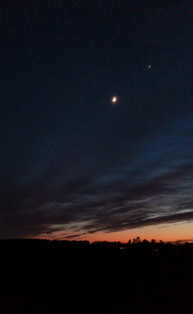 Esa Tuunanen kuvasi Parikkalassa hienon, vähenevän Kuun kahtena peräkkäisenä iltana.