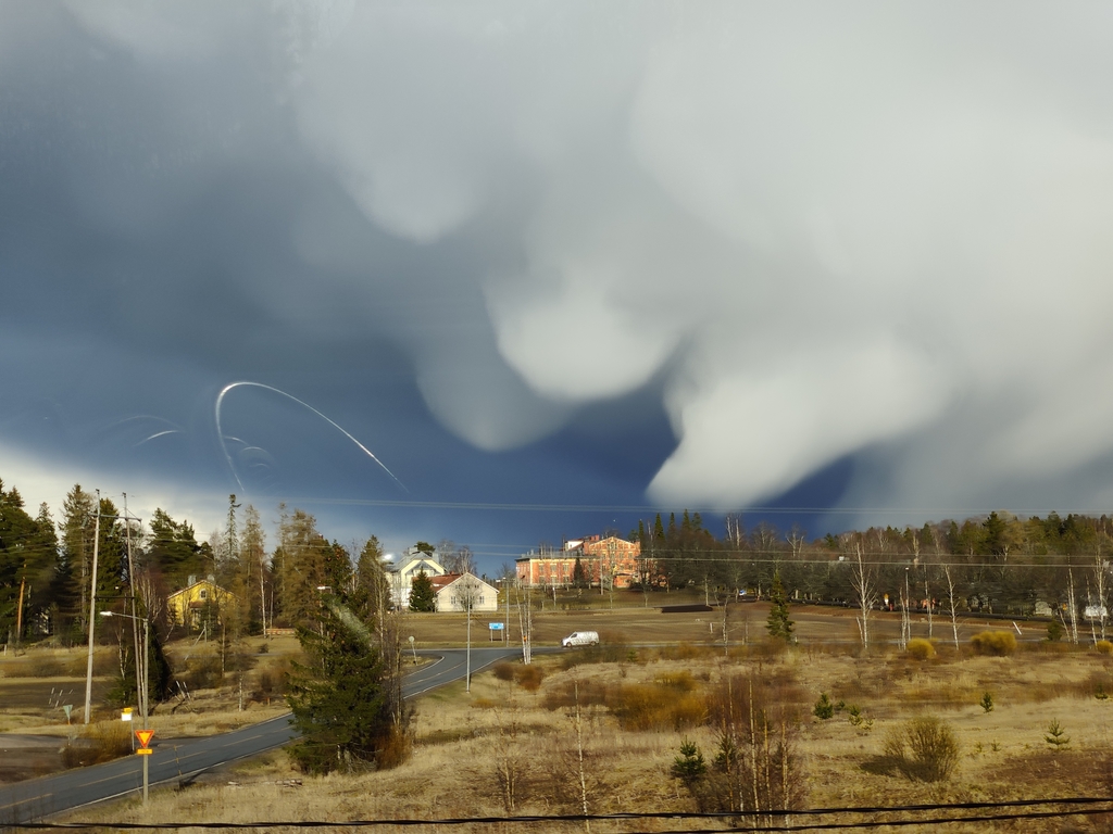 16.4.2020 Autolla ajaessa näimme mielenkiintoisen pilvimuodostelman. Totesimme sen olevan mammatuspilvimuodostelma.