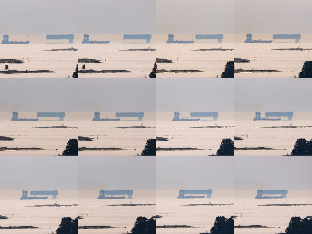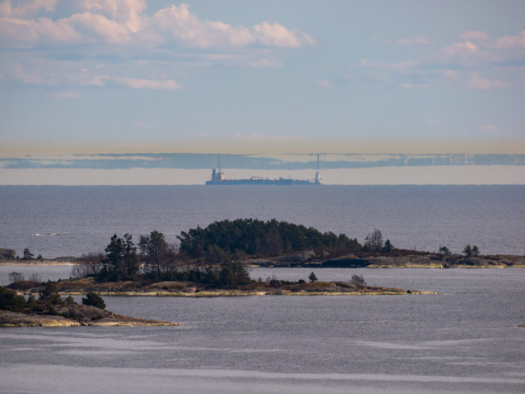 Olin retkeilemässä Porkkalassa mukavan hiljaisena päivänä, COVID-19-tilanteen vuosi kun on hyvä pitää etäisyyttä muihin ihmisiin. Kun olimme lähdössä pois, päätimme myös poiketa Porkkalan lintutornissa. Huomasin nopeasti että horisontissa näkyy kangastuksia joita kuvasin kymmenisen minuuttia.