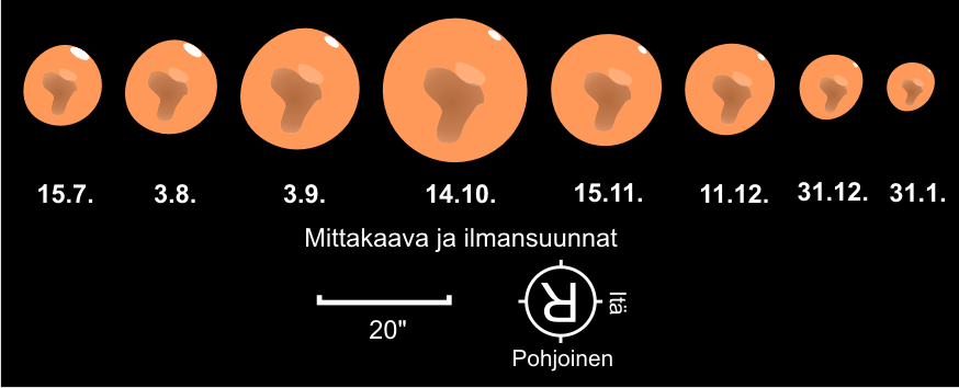 Ensiksi kannattaa kaavioon merkitä vaihe, mikäli se on selvästi havaittavissa. Seuraavaksi kannattaa merkitä ilmansuunnat ja akselin kallistuma. Tämän jälkeen voitkin aloittaa varsinaisen havainnon teon.