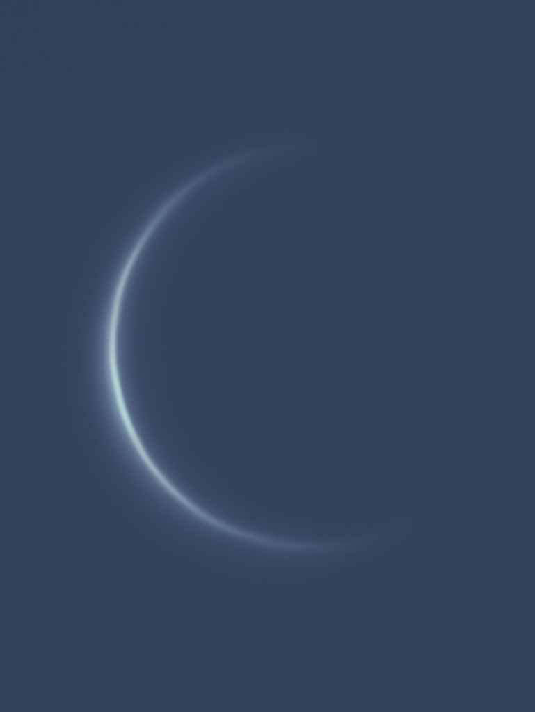 Hyvin kapea Venuksen sirppi kuvattuna 1.6.2020 kello 14.43. Sky-Watcher Skymax 127 Maksutov, IOptron AZ Pro goto -jalusta, ZWO ASI185MC -kamera. Baaderin 685 IR pass -suodin. Kuva: Rauno Päivinen.