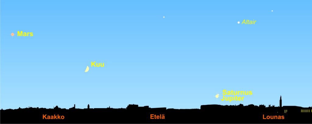 Parin kuluneen vuoden ajan Jupiter ja Saturnus ovat olleet kesäöidemme ilona, joskin varsin matalalla: Pohjoisimmassa Suomessa planeetat eivät ole nousseet lainkaan edes horisontin yläpuolelle. Etelämmässä ne ovat kuitenkin erottuneet kirkkaina loppukesän ja alkusyksyn taivaalla.