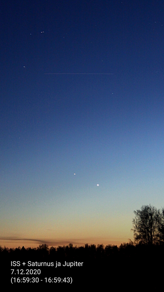Jupiter, Saturnus ja ISS kuvattuna 7.12. klo 16.59.