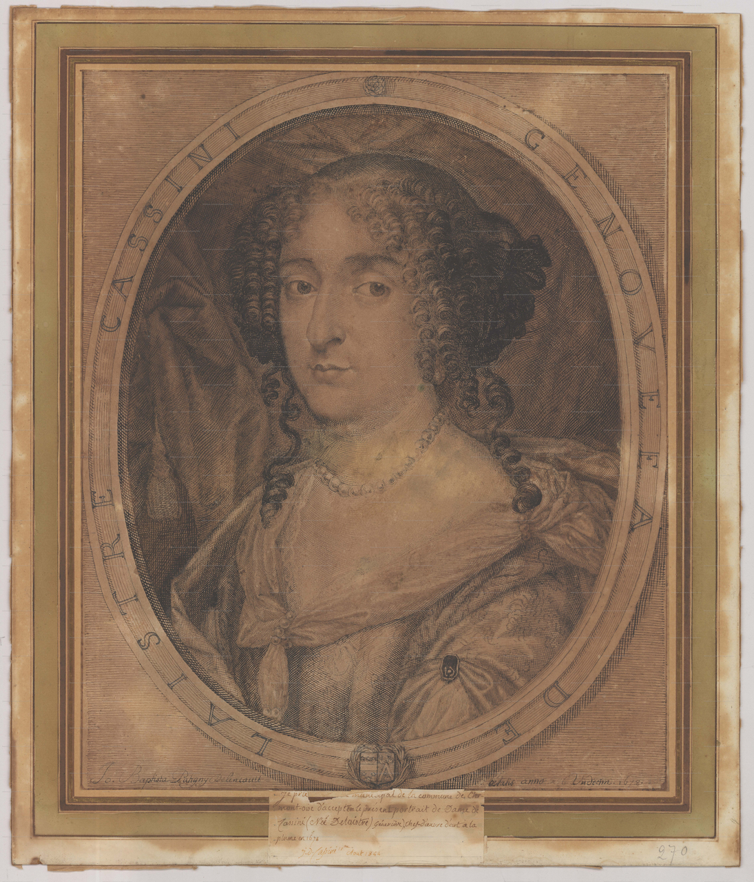 C’est elle! Cassini tilasi tämän muotokuvan vaimostaan vuonna 1678. Piirtäjänä toimi Jean Baptiste Patigny, Cassinin avustajan tuolloin 11-vuotias poika. Cassini IV ripusti tämän muotokuvan Clermont-Oisen kaupungintalolle, jossa se on edelleen (Bibliothèque municipale de Clermont de l’Oise).