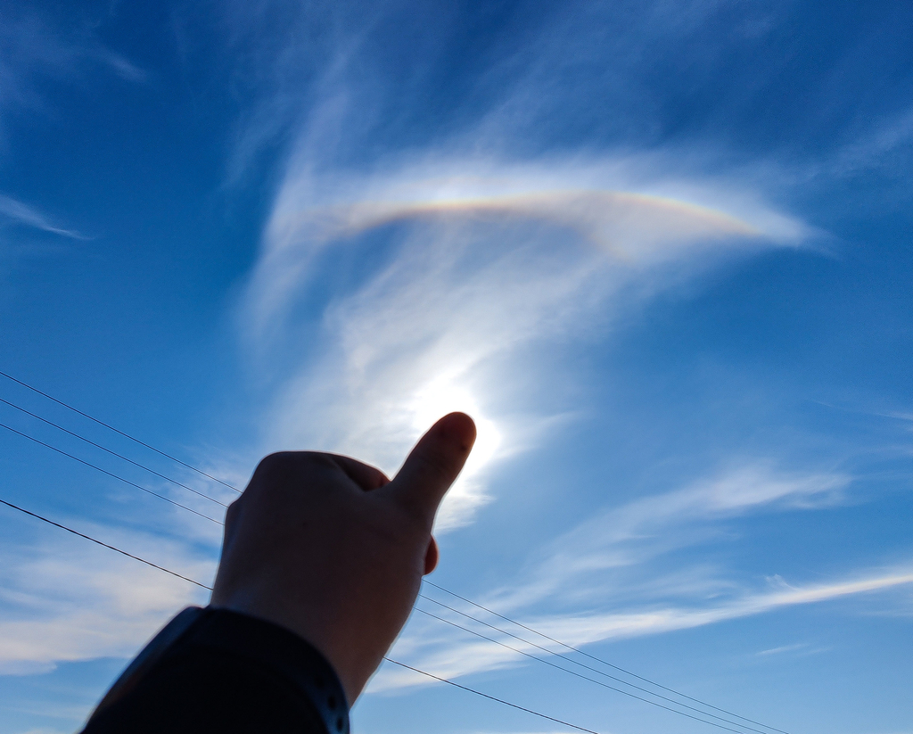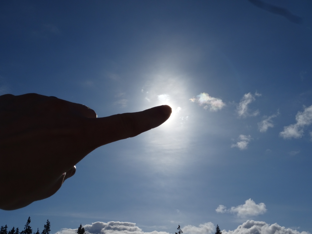 Veronica Laitinen kuvasi iltalenkiltä tullessaan pienen auringonpilaripätkän, joka näytti useammilta pieniltä pilareita. Tämä varmistui myöhemmin huippuharvinaiseksi heijastus-ala-auringoksi.