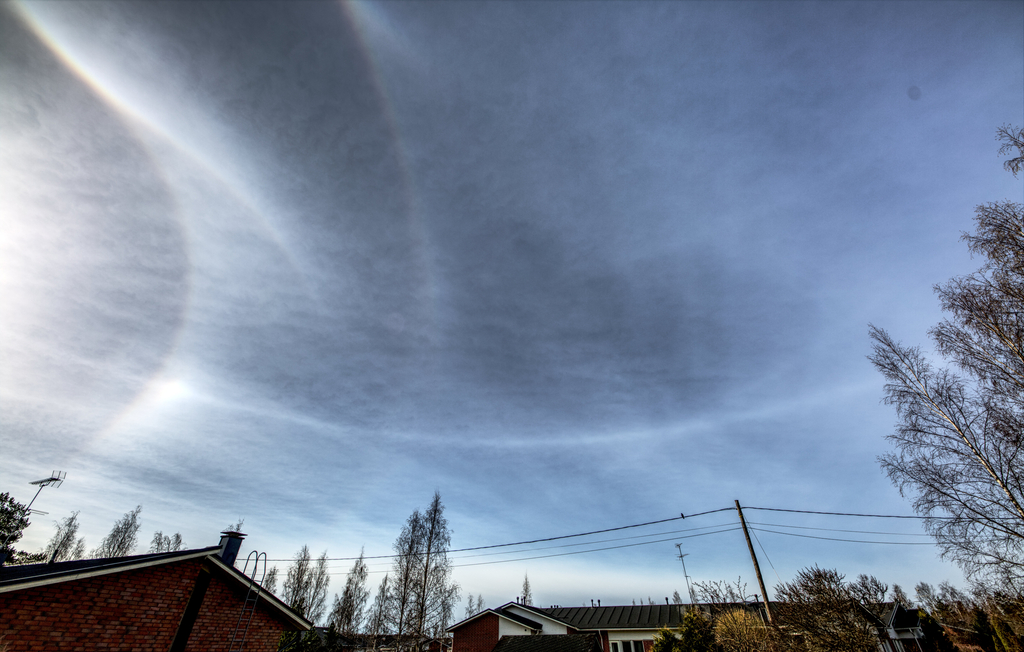 Olipa kivan näköistä haloa taivaalla maanantai-iltapäivällä. Pitkästä aikaa ehti tarttua kameraankin, ohessa muutama kuva tuosta halonäytelmästä.