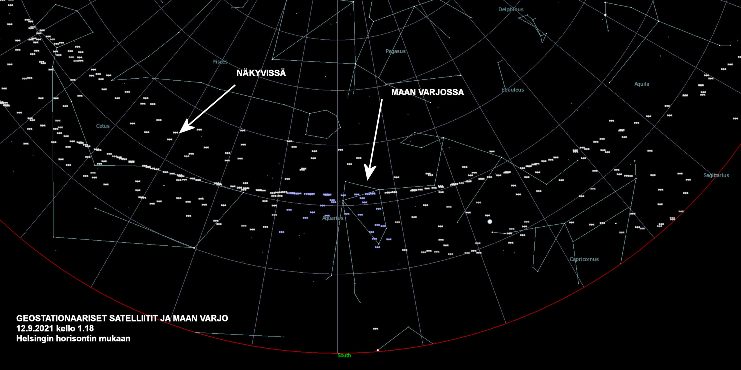 Taas on se aika vuodesta, jolloin voi nähdä etäisiä geostationaarisia satelliitteja jopa paljain silmin, ainakin kiikarin avulla! Syys- ja kevätpäiväntasausten aikoihin Maan varjo pimentää geostationaaristen vyöhykkeen satelliitteja taivaalla ja tapahtuman yhteydessä nähdään voimakkaita kirkastumisia Maan varjon rajan tuntumassa.