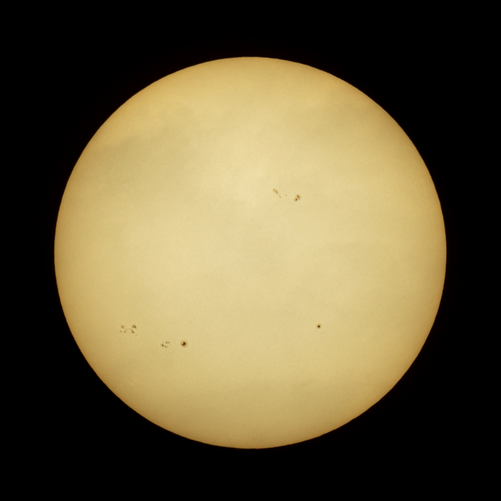 No niin, nyt päivätähdessä oli jo neljä pilkkuryhmää yhtä aikaa näkyvillä. Okulaarin läpi näytti hienolta, ohut pilviverho ei paljoa haitannut.