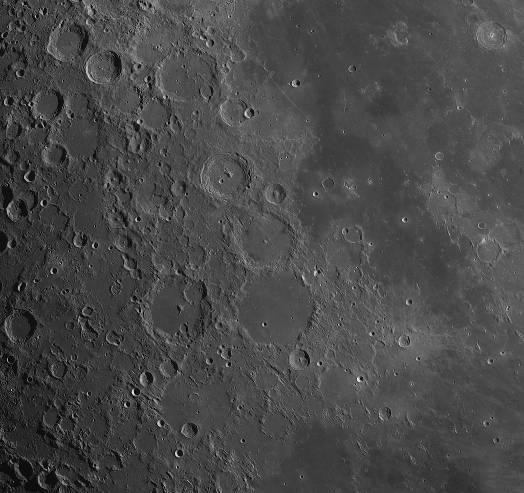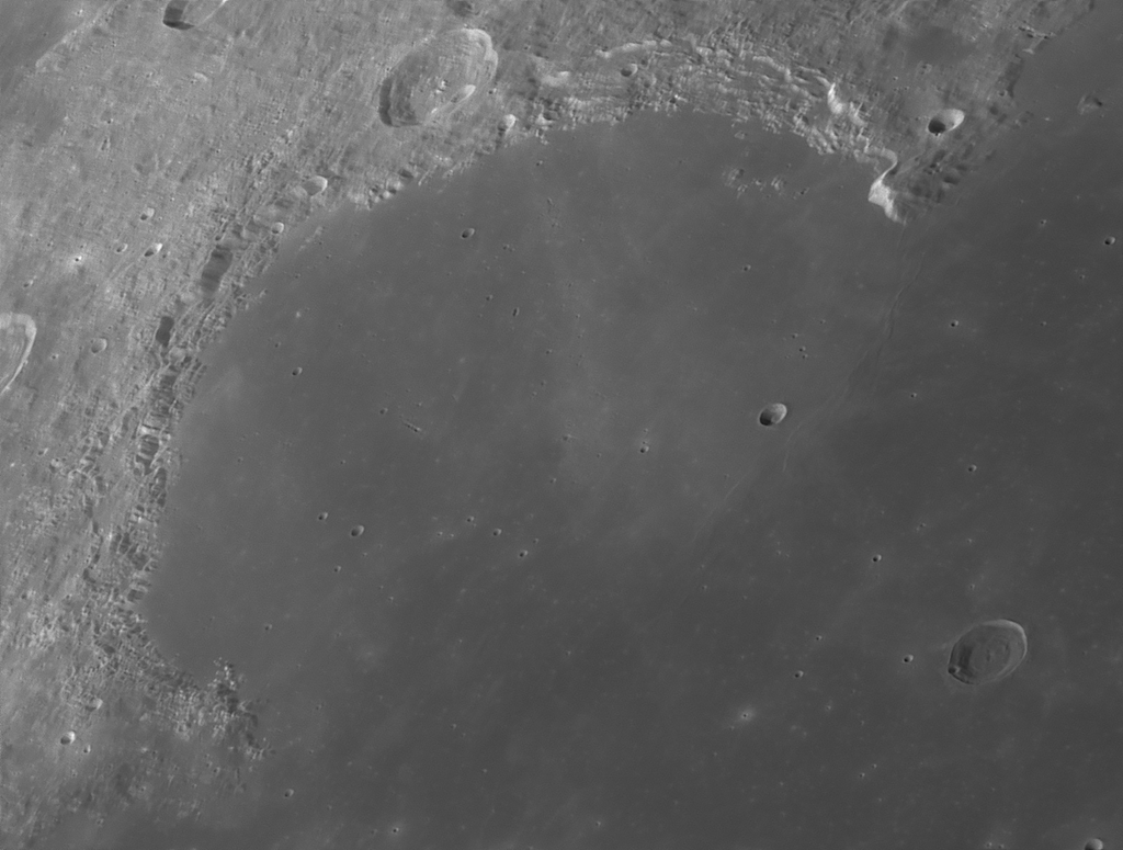 Vein uuden kaukoputkeni, Skywatcher MN190, pihalle jäähtymään ja jonkin tovin päästä asettelin kameraa siihen kiinni. Kuu möllötti kivasti idässä, joten ensimmäistä havaintokohdetta ei tarvinnut varsinaisesti etsiä. Seeing oli rauhallisesti aaltoileva ja yllättävänkin hyvä. Mutta kun ollaan jo aika lähellä täysikuuta, oli editointi pientä tuskallista painia kontrastin kanssa.