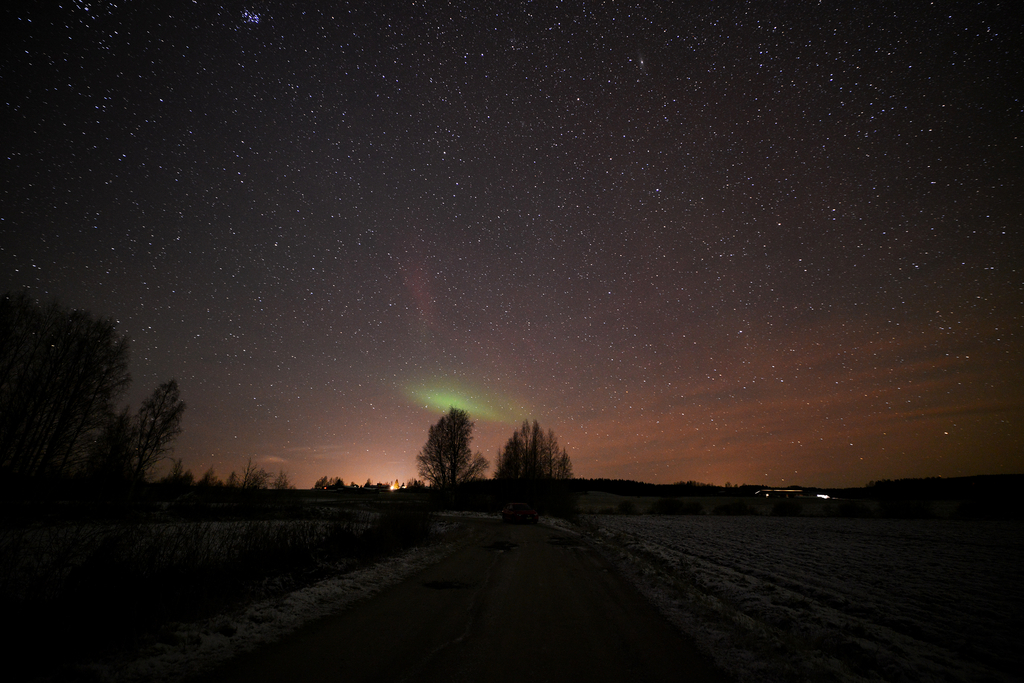 Samana yönä Eero Karvinen oli myös kuvaamassa revontulia. Kuviin tarttui myös hieno ilmahehku.