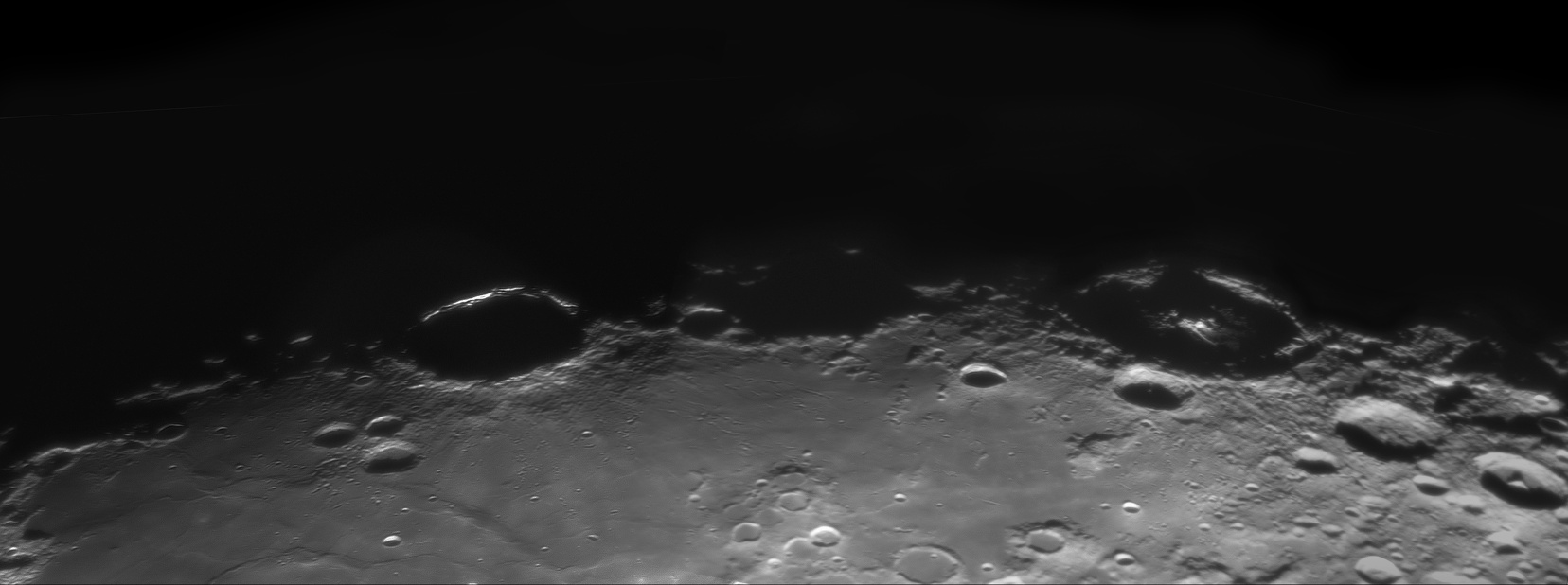 Petaviuksesta erottui selvästi sen eteläisen reunavallin tuntumassa oleva rako, itse kraatterin pohjassa olevaa rakoa en erottanut. Vieressä oleva 57 km leveä kraatteri on Wrottesley. Seeing oli varsin hyvä, kaukoputkena Skymax-127.