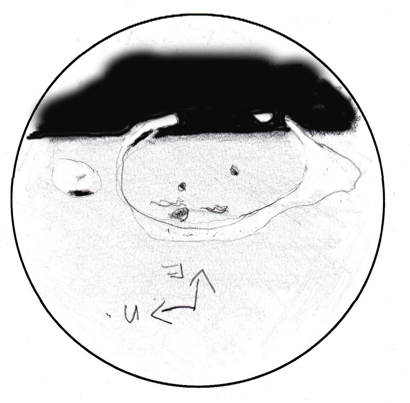 - Mare Crisium 21.11.2021 klo 21.10–30. Kaukoputki M127/1500, okulaarit 10 ja 6 mm (150× & 250×). Piirros: Paula Wirtanen.