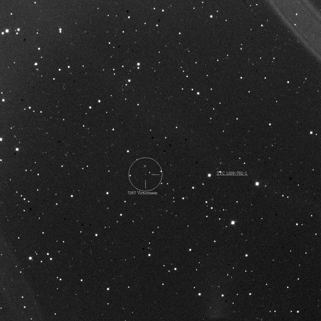 Kuva 2. 7267 Victormeen, Liisi Oterman 23.2.1943 Iso-Heikkilässä löytämä asteroidi, päätyi 4,5 vuotta kestäneen projektin päätöskohteeksi. Sen rata risteää Marsin rataa. Kohde on nimetty kanadalaisen geologin Victor Ber Meenin (1910–1971) mukaan. Tutkijoiden piirissä hänet tunnetaan käänteentekevästä löydöstä, jonka mukaan Pingualuit-kraatteri Kanadassa on meteoriitin aiheuttama eikä vanhan tulivuoren jäänne. Kuvausyönä 3.–4.9.2021 tämä 4,36 km:n asteroidi oli 1,67 au:n etäisyydellä. Lähimmillään se tulee 1,29 au:n päähän. Kuvista mitattu kirkkaus oli 18,2–18,3 mag.