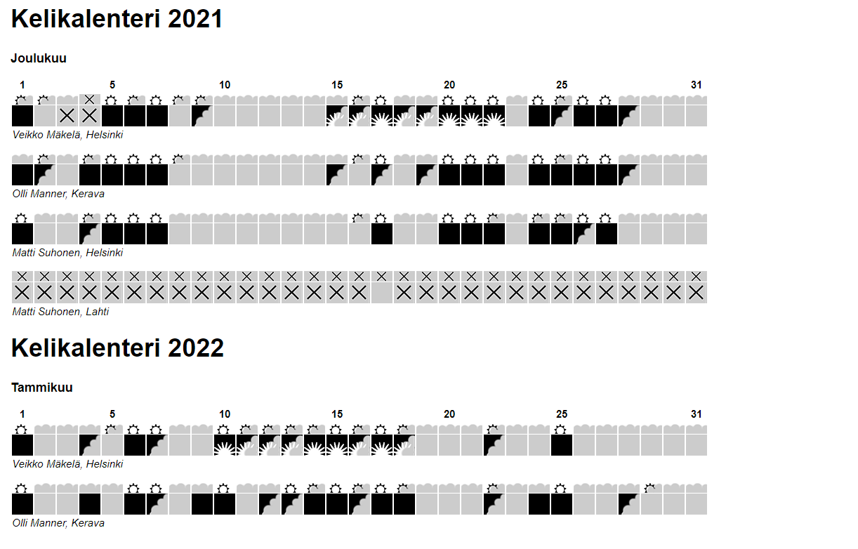 Kelikalenteri joulukuu 2021-tammikuu 2022 Yleinen 28.2.2022 0 Matti Suhonen, Veikko Mäkelä, Olli Manner