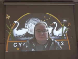 Verkko-osuudessa oli aidosti hydridielementtejä, sillä kerho- ja yhdistysryhmän työpajaan saattoi osallistua verkoitsekin. Lauantaina Paula Wirtanen piti planeettataivasesitelmänsä etänä ja se tuotiin verkon kautta cygnuslaisten seurattavaksi luentosaliin. Myös jonkun verran etäpäästä esitettiin kysymyksiä, vaikkakin melko vähän.