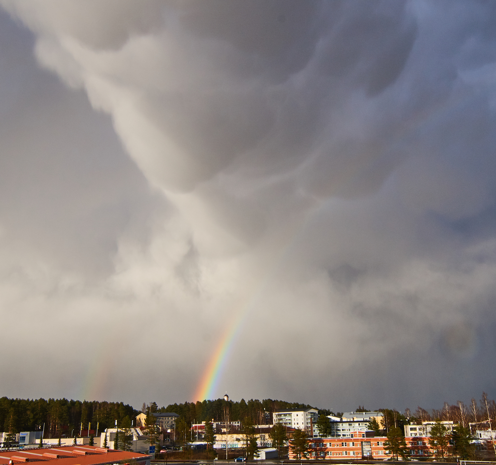 2.5. Laukaan taivaalla näkyi monenlaista kuvattavaa. Kaunis sateenkaari ja komeat mammatuspilvet, jotka Tarja Kouvo tallensi hienoihin kuviin: