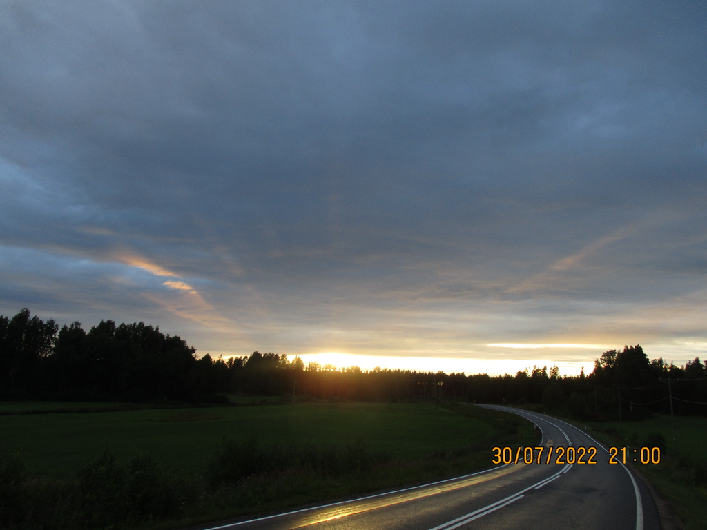 Juhannusaamuna klo 2 jälkeen näkyi hämäränsäteitä,vajaan tunnin seurasin tuota,kuunsirppi nousi myös samaan maisemaan