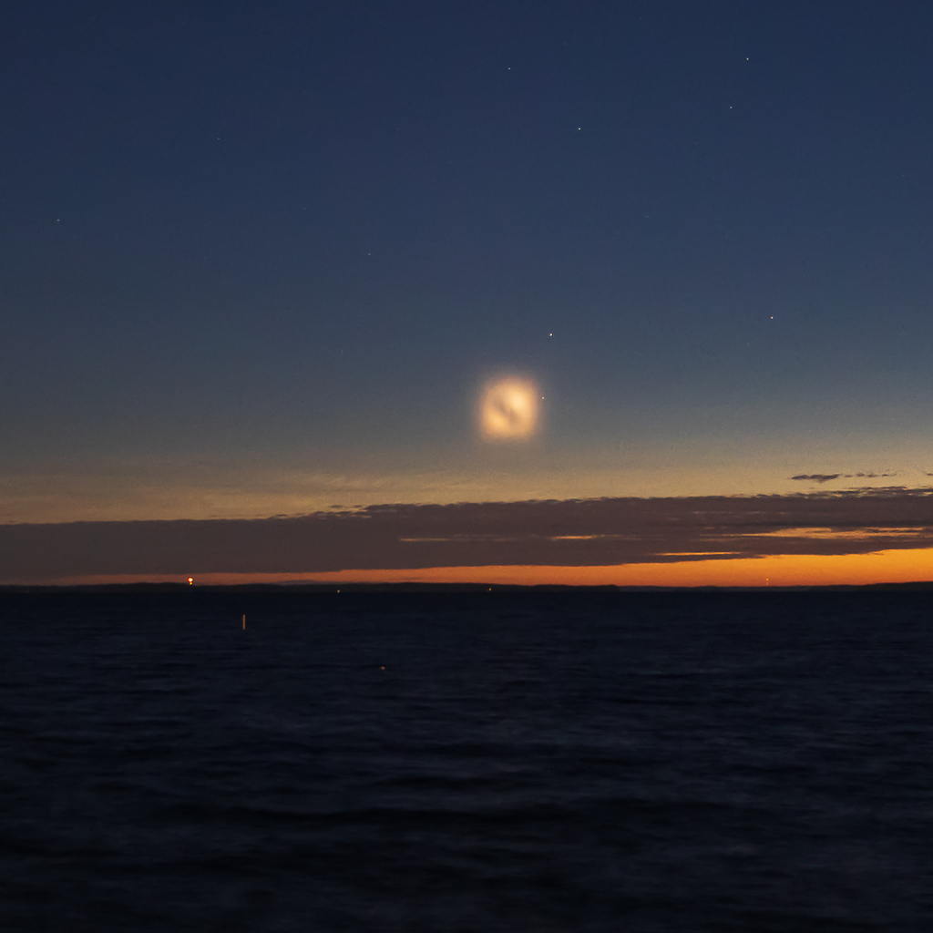 Olipas hieno tapaus. Hetken näytti siltä, kuin valonlähde olisi kiitänyt sumun tai pilven läpi. Siitä ei tokikaan ollut kyse, mutta aivan valtavan hieno efekti se oli. Samaten vaikutuksen teki kirkkaimman valopisteen alle syntynyt rengas, joka oli näkyvillä hetken aikaa. Siitä en saanut kuvaa.