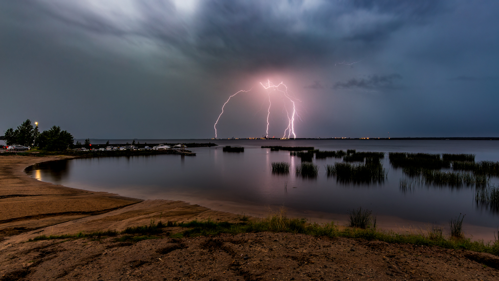 Vaimeaan jyrinään heränneenä köpöttelin rantaan katsomaan olisiko mahdollista kuvata muutama salama. Vaikka heräsin Show`hun hieman myöhään, oli seuraaminen oikein mukavaa, kun sadekaan ei yltänyt havaintopaikalle asti.