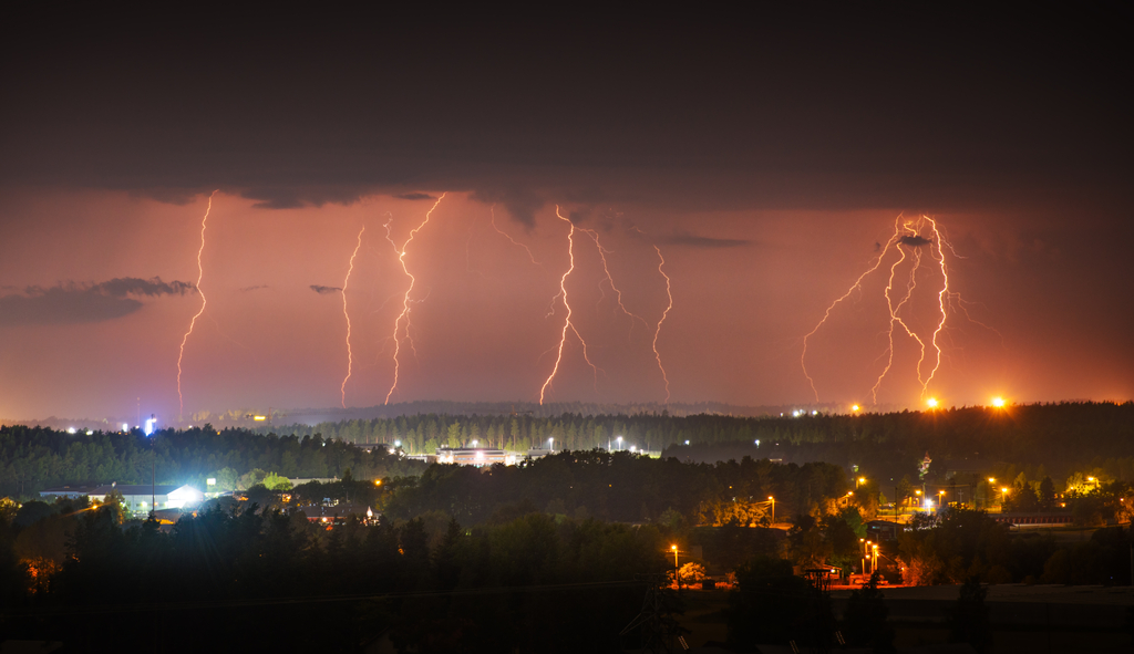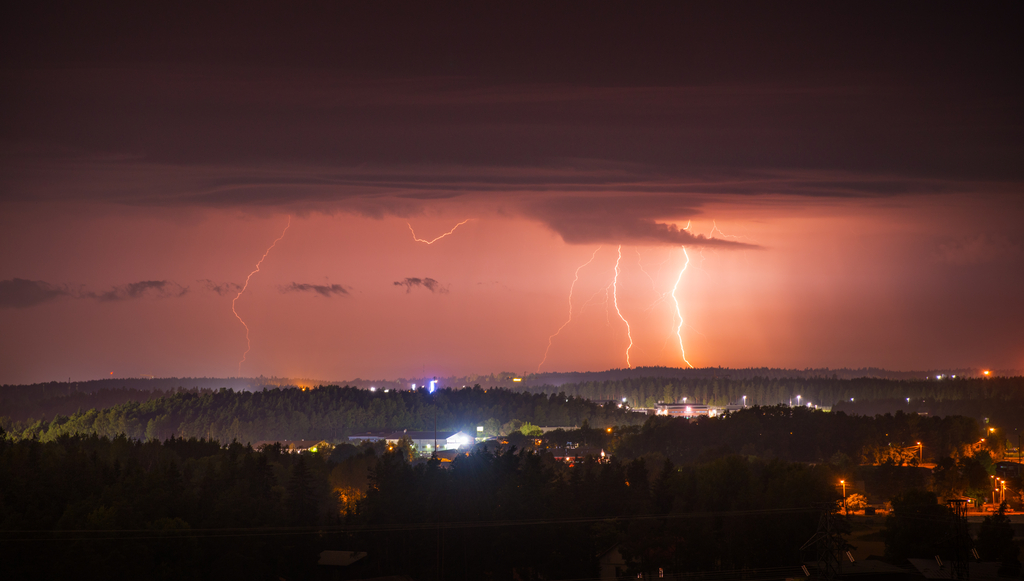 Parhaina hetkinä salamoita näkyi alle kymmenen sekunnin välein. Ei hetkeen muistu tällaista tiheyttä näillä kulmilla.