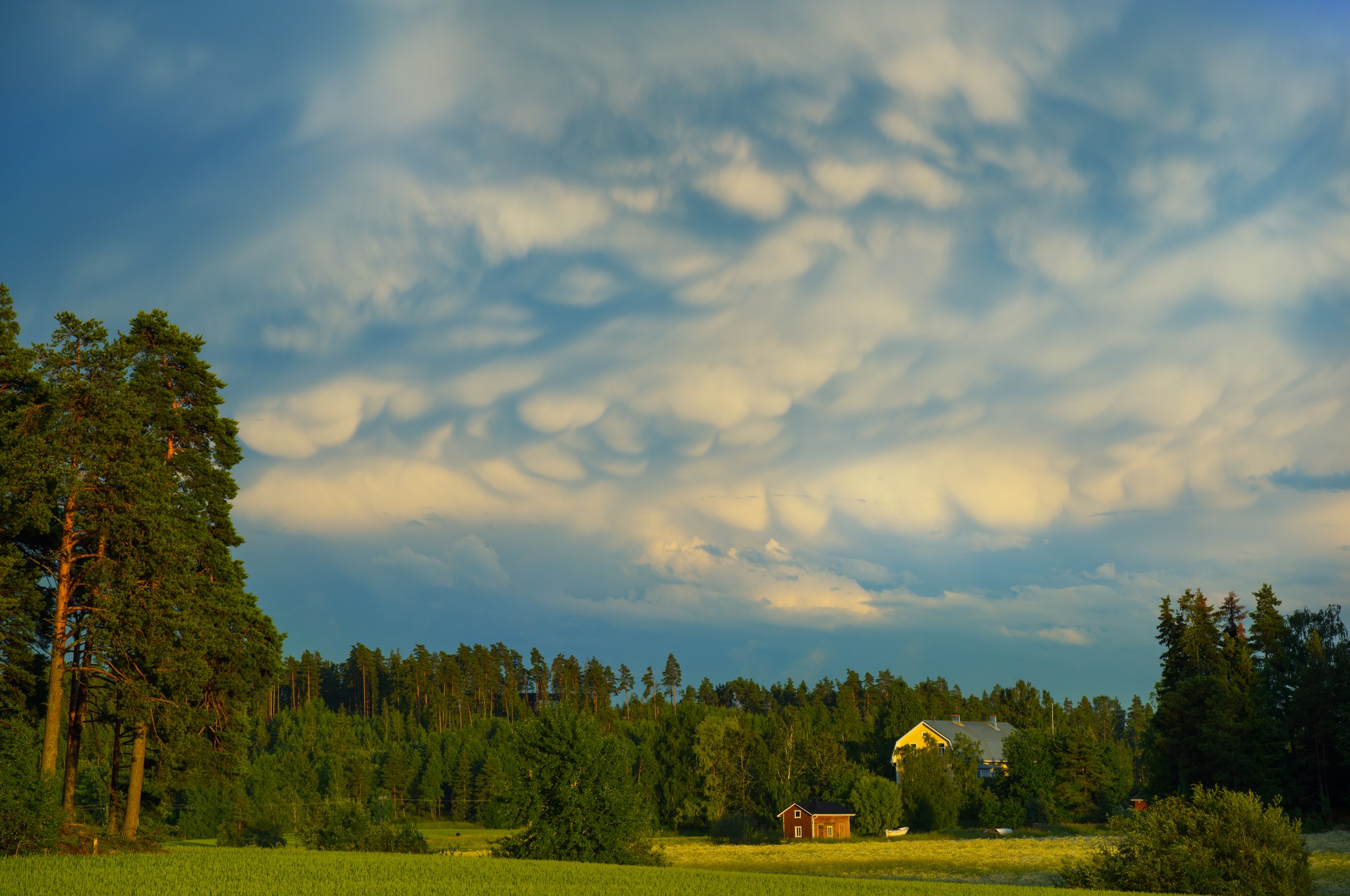Saunan jälkeen käväisin vilvoittelemassa takapihalla. Ja sitten mentiin taas. Itäistä taivasta koristivat mahtavat mammatus-pilvet.