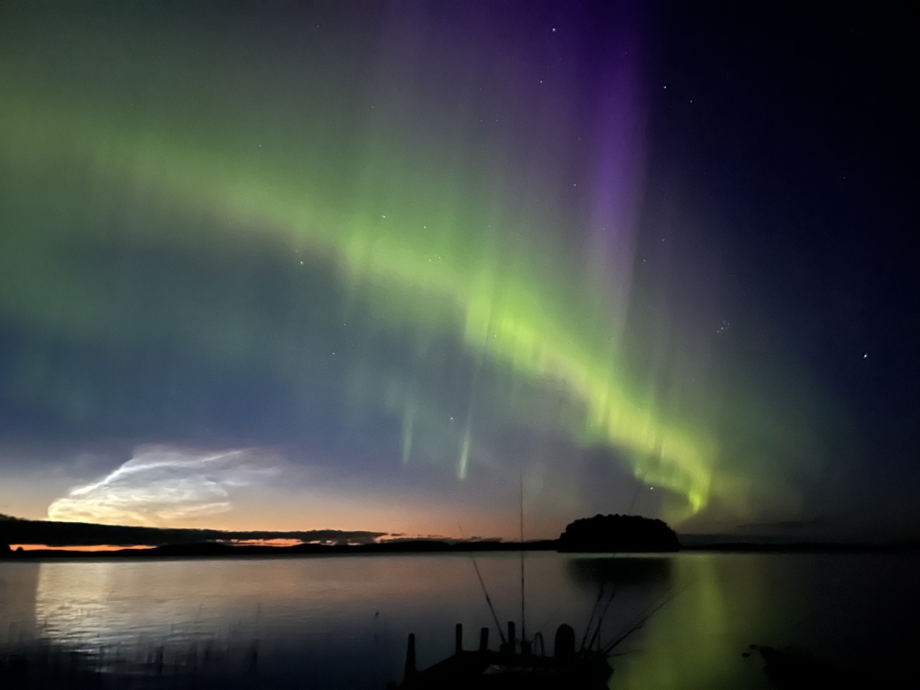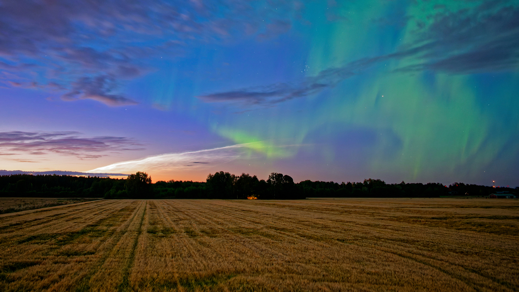 Merkittävä yö koettiin 7-8.8., kun taivaalla näkyivät samanaikaisesti valaisevat yöpilvet ja kirkkaat revontulet.