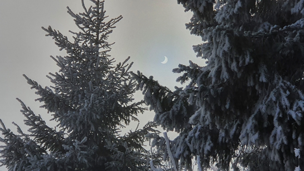 Sotkamossa Mauri Hyvönen tarkkaili pimennyksen kulkua melko talvisissa maisemissa.