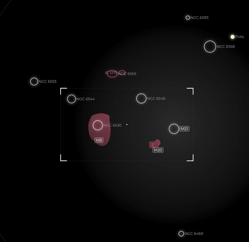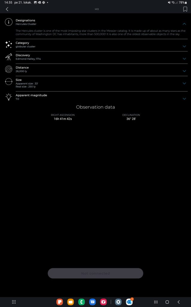 Kohteista näytetään paljon lisätietoja, kuten missä kohde sijaitsee, mihin kategoriaan se kuuluu, kuka kohteen on löytänyt sekä sen etäisyys, koko ja kohteen magnitudi. Näiden alta löytyy vielä syvällisempää tietoa.
