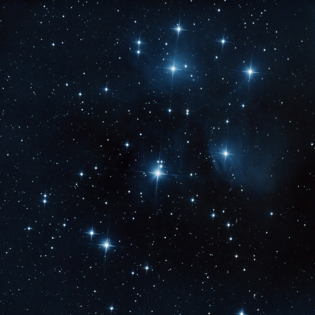 Kuvasin satakunta ruutua. Illan reipas tuuli pilasi ennakkoaavisteluni mukaan osan ruuduista, osaan jäi pilvenriekaleita, joita kiiri pitkin taivasta. Kuu ja Seulaset olivat lisäksi samalla suunnalla vain noin 15° etäisyydellä toisistaan. Eli kovin paljon en odotuksia lataillut. Kameran esikatselussa emissiosumua ei juurikaan erottanut. Pinotussa versiossa, siniseen väännetyssä lopullisessa kuvassa sen sai kuitenkin jonkin verran esiin. Pinoon valikoitui 49 hekkyydellä ISO800 ja 20s valotuksella kuvattua freimiä.