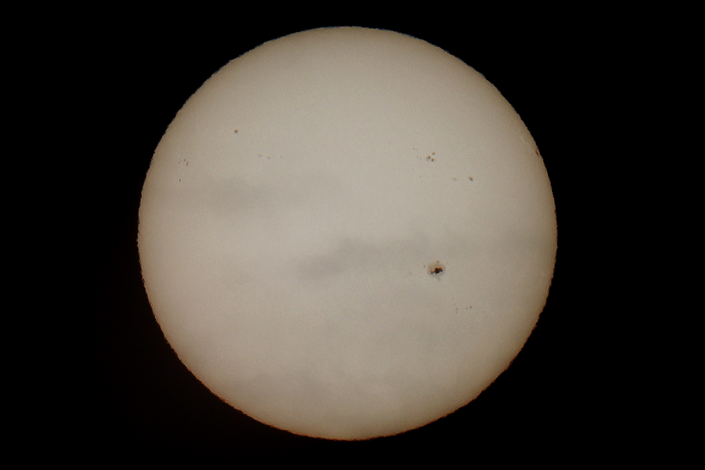 21.1. päivänä pilvipeite antoi armoa ja Aurinko pääsi loistamaan. Komeita pilkkuja sen kiekossa näkyikin: