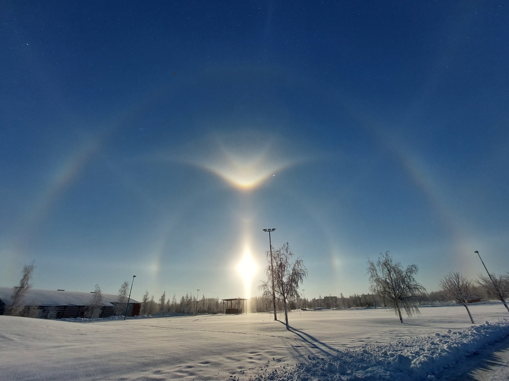21.1.2023 Lahdessa oli mahtava halopäivä. Jääsumuun syttyi toinen toistaan upeampia kaaria. Ulla Ojanen pääsi tallentamaan näytöksen, joka oli täynnä harvinaisia halomuotoja: