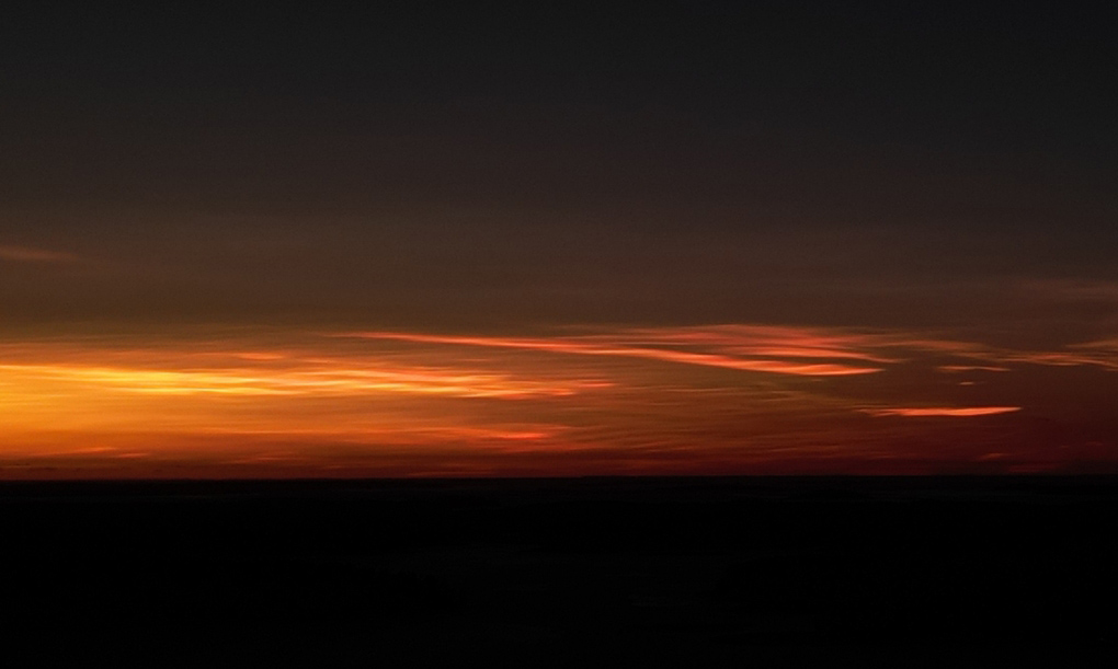 Olihan näytös! Viime vuosina on totuttu enimmäkseen koronan aukoista tulleisiin tuuliin ja niiden antamiin selkeisiin alimyrskyihin pinkkeine alareunoineen. Mutta tämä kesti tauotta ainakin parisen tuntia ja silmiinpistävää oli pitkäikäinen punainen tasaväri.