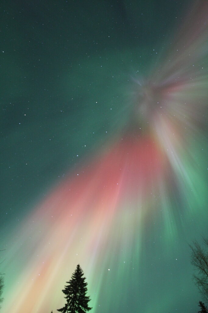 En vain ole yksinkertaisesti ole koskaan nähnyt niin värikästä ja pitkää revontulinäytöstä. Koronakin näkyi todella pitkään. Ja ne värit! Ihan epätodellisen paljon punaista ja vaaleanpunaista ja kamera näki kaikkia mahdollisia värejä, silmäkin monia. Oli pitkiä kaari taivaan poikki ja sykkiviä palloja. Huh huh ja huh!