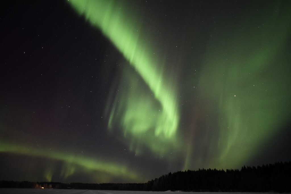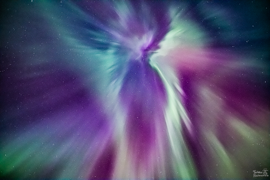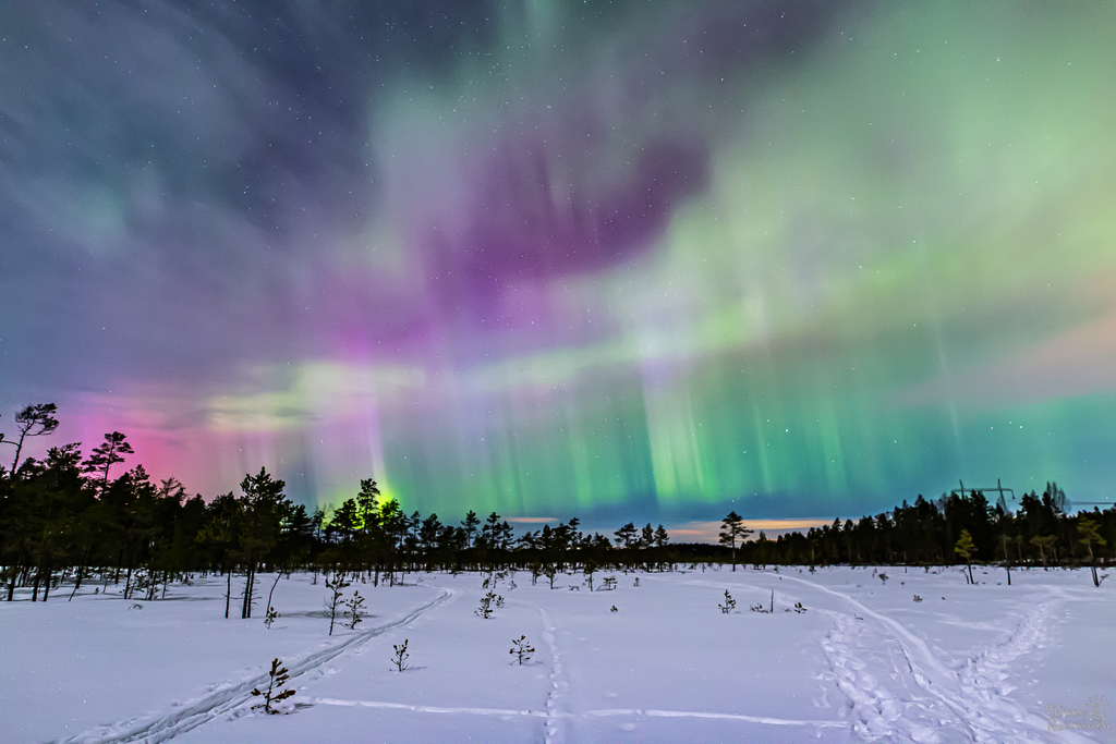 Olen aloittanut valokuvaajaopinnot ja luonnollisesti halusin muutaman muun harrastajan kanssa esitellä harrastustamme opiskelijatovereillemme. Ja nyt meni kyllä esittely ihan nappiin.Olimme vyhteisellä revontuliretkellä Isonevan luonnonsuojelualueella. Tiesimme odottaa jotain aivan erityistä ennusteiden perusteella, mutta silti se mitä näimme oli ihan omaa luokkaansa. Jo iltayhdeksältä oli täysi show käynnissä, hetkeksi se laantui ja loppuyöstä lehahti sellainen värien ja muotojen sirkus, että en ole ennen nähnyt vaikka olen kohta kymmenen vuotta kolunnut revontuliöitä.