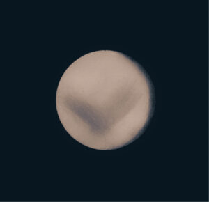 - Kuva 19. Mars 2.1.2023 klo 1.30–2.00. CM = 302°, kulmaläpimitta 14,5”. M150/1800, Hyperion 13 mm, suurennus n. 138×, Baader Moon & Skyglow -suodin. Kuva: Aki Karjalainen.