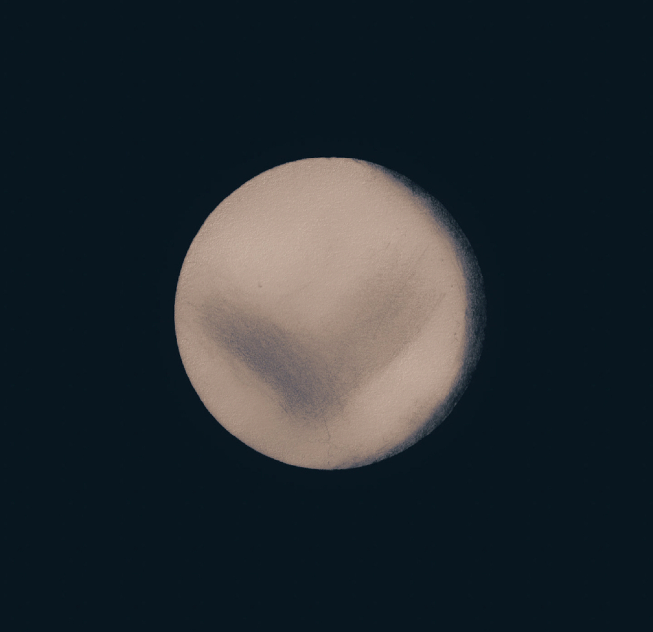 - Kuva 20. Mars 5.1.2023 klo 19.35–19.43. CM = 176°, kulmaläpimitta 14,0”. RF 135/1950, 10 mm, suurennus 195×. Kuva: Paula Wirtanen.