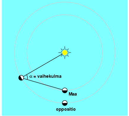 Kuva 1. Vaihekulma kaavion avulla selitettynä. Kaavio: Hannu Karttunen, Ursa ja Tuorlan observatorio.