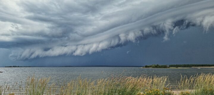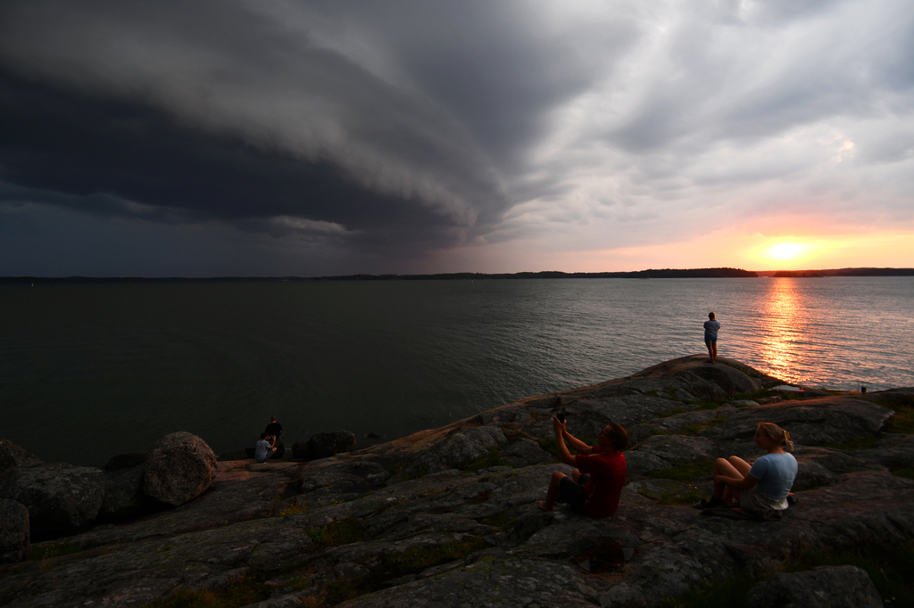 Olimme aamuretkellä Isokrunnin saarella Rauman edustalla. Sää oli epävakainen ja etelässä oli myrskypilviä ja lännessä sadepilviä. Lännessä olevista sadepilvistä muodostui useita trombin alkuja.