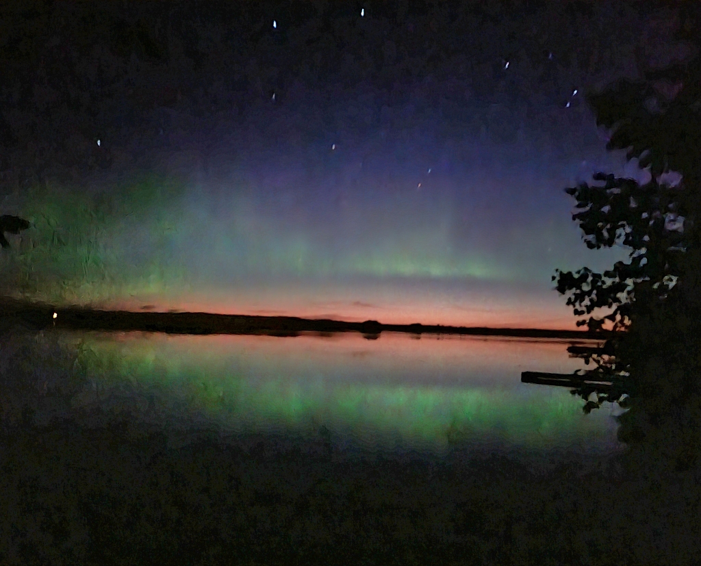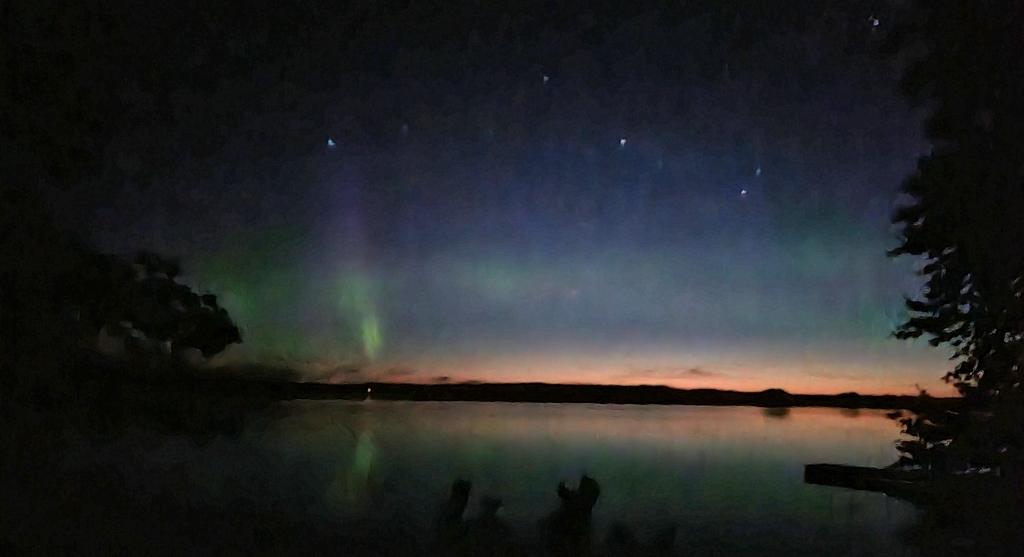 Maritta Kinnunen nappasi heinot kuvat loppukesän revontulista. Huomionarvoista on myös käytetty väline eli kännykkä, Samsungin S21:
