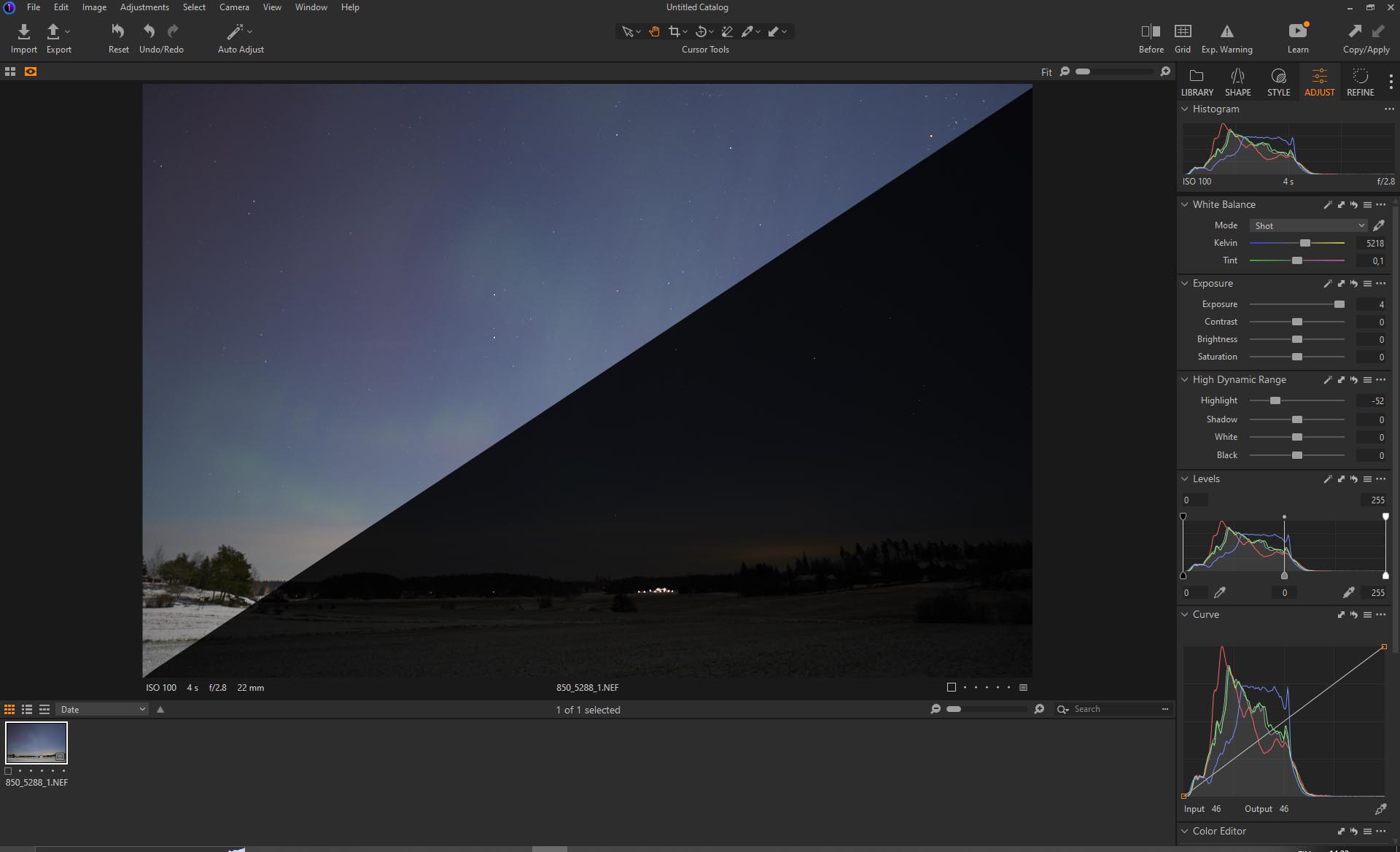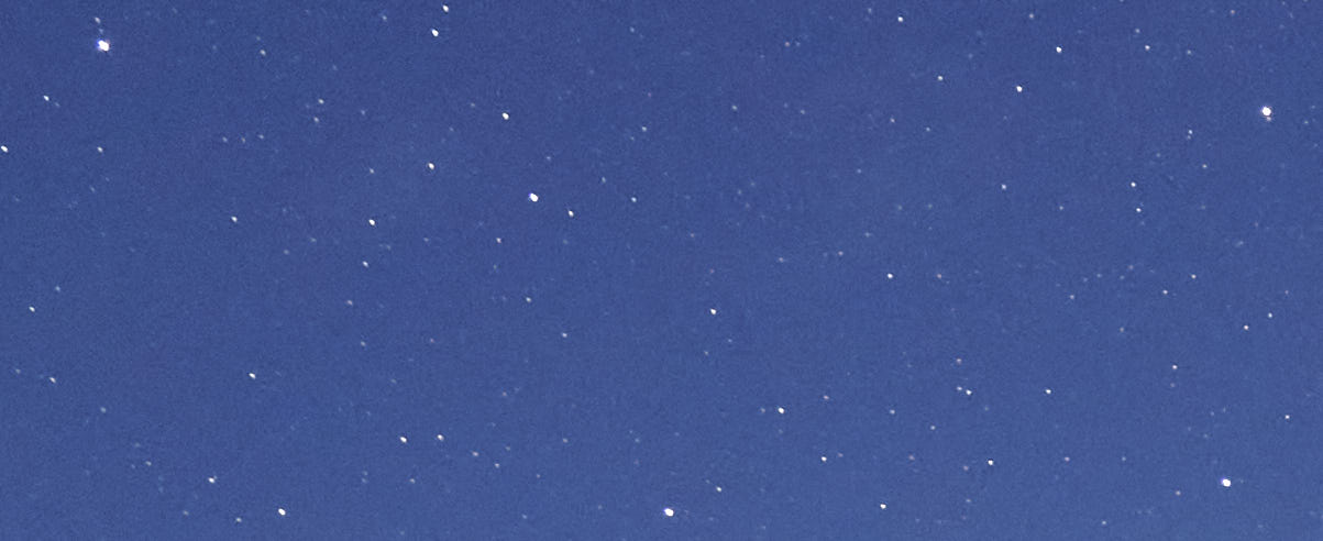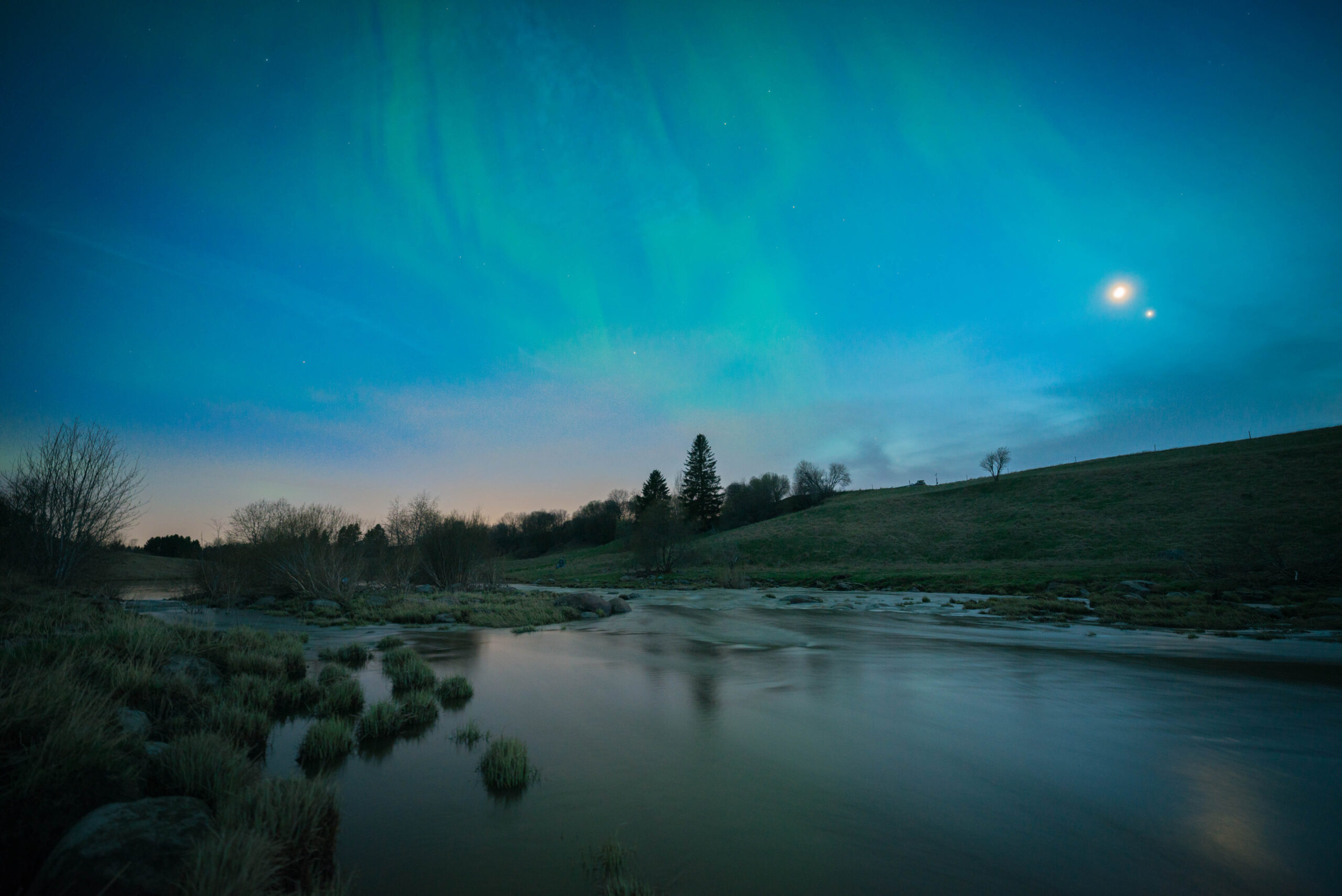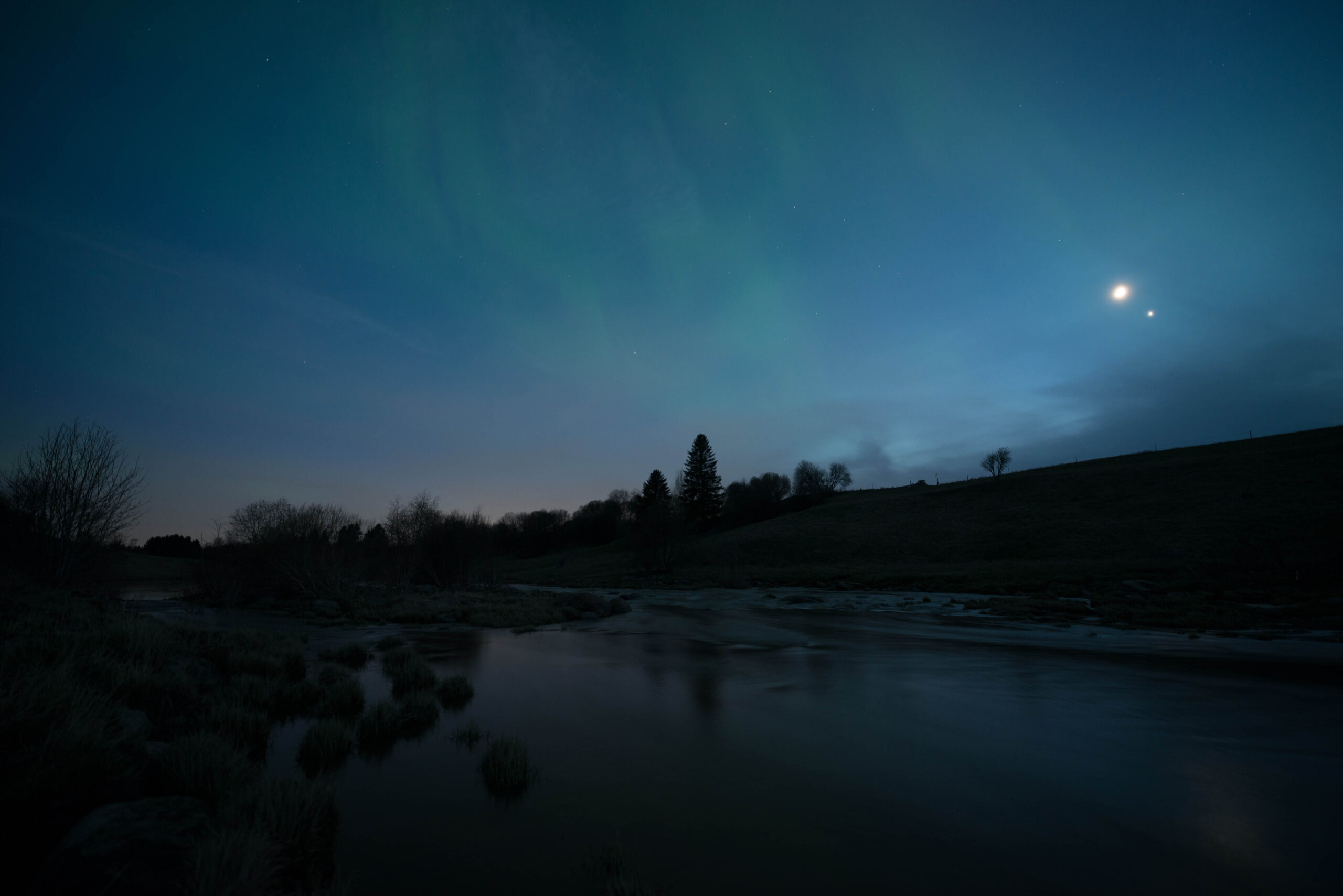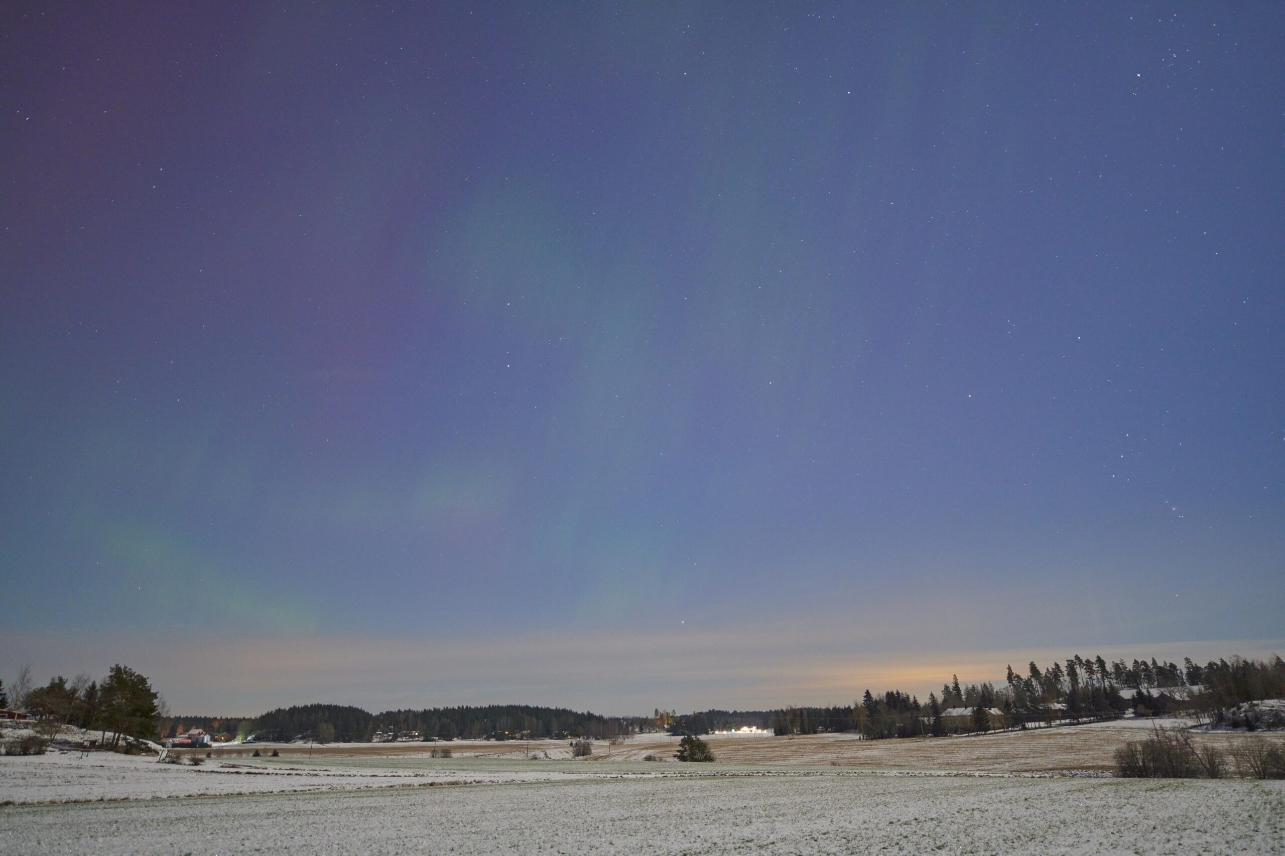 Yllä oleva esimerkkikuva on vielä melko mieto tapaus. Kevään vaaleana yönä D800 -rungolla otettu kuva. Itse asiassa taivas oli jo niin vaalea, että kovin korkeaa herkkyyttä ei edes voinut käyttää. Kunnolliset testit tein vasta syksyllä ja alkutalvella 2023.