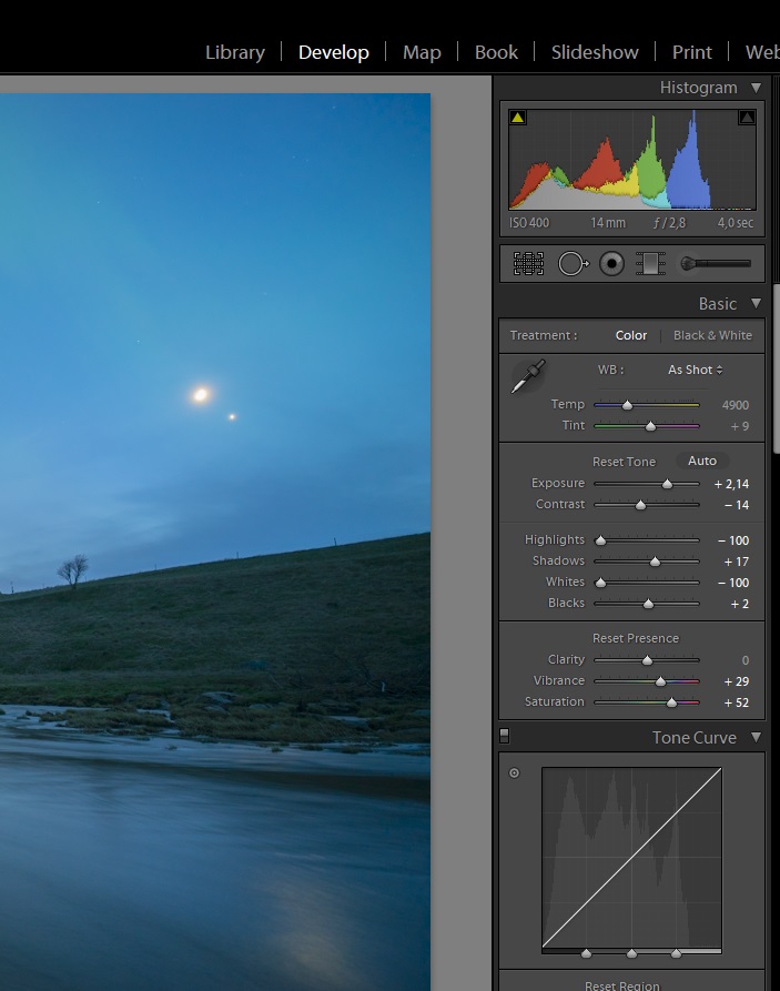 Nämä voidaan kuitenkin palauttaa joko käyttämällä eri valotukselle säädettyjä tasoja tai korjaamalla Lightroomin ym Whites- ja Highlights -säätöjä.