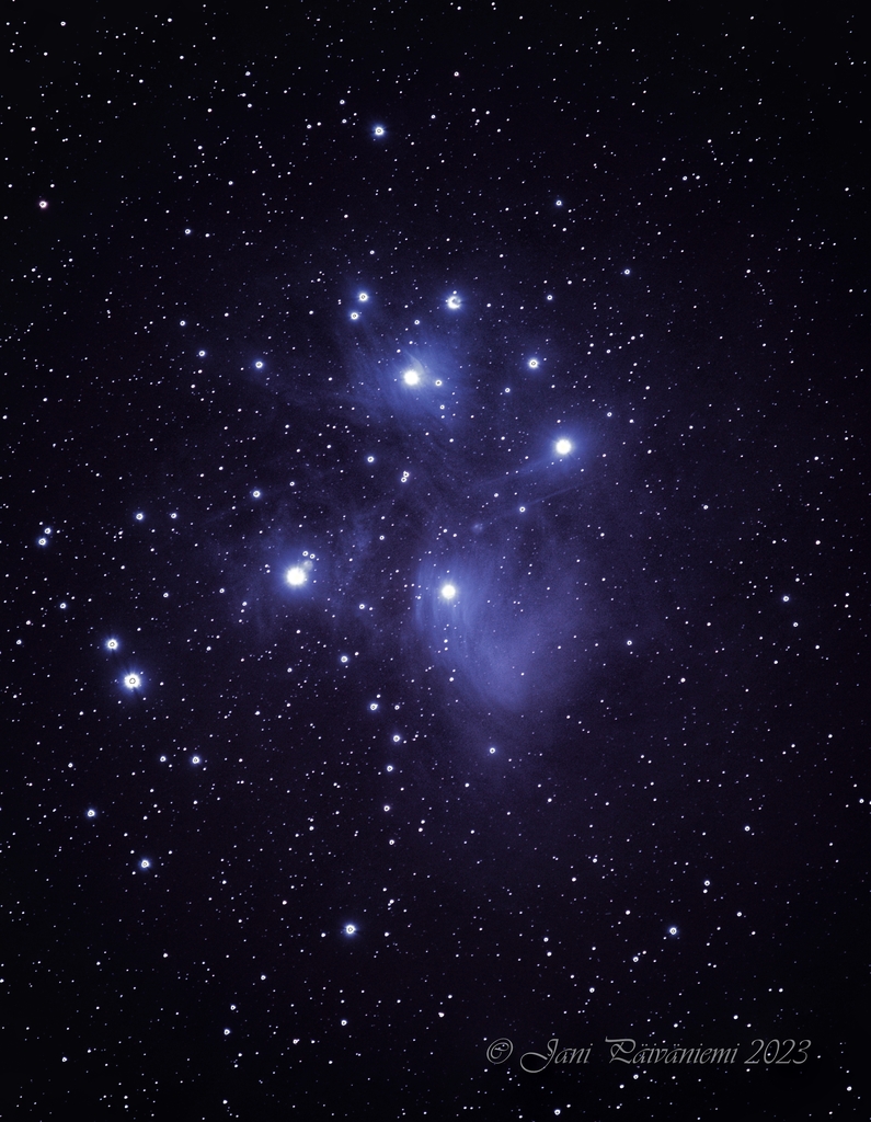 Nikon D7500, ISO6400, Expert 400 mm f6.3, 10×30 sekunnin valotus (5 min). SkyWatcher AZ-GTi jalusta. Pinoaminen DeepSkyStacker (64 bit).