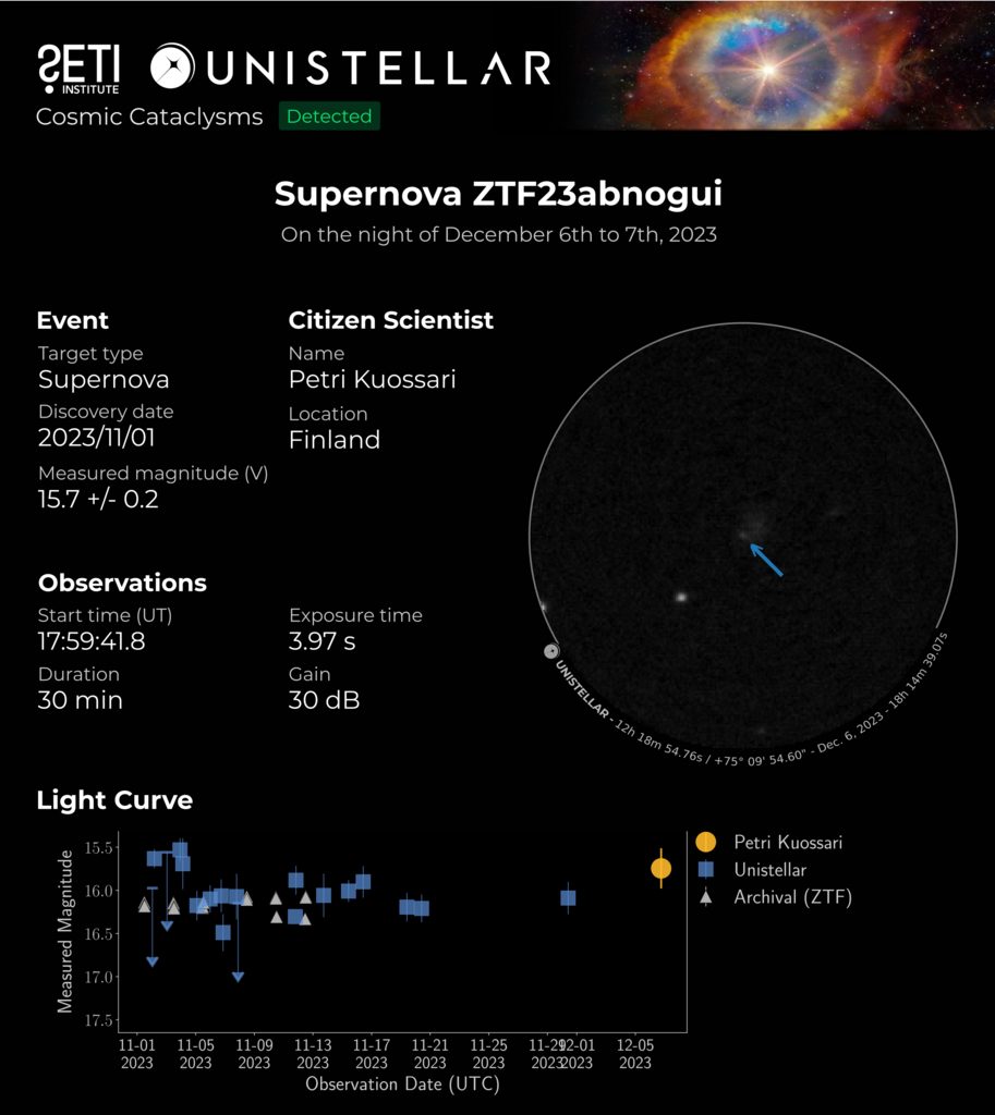 Petri Kuossari kuvasi harvinaisen ilmiön, supernovan:
