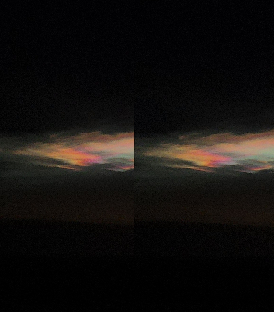 Olihan hienot helmiäispilvet! Koetin ottaa niistä myös stereokuvia dronen avulla, mutta kova tuuli hankaloitti asiaa. Eipä noista kovin ihmeellisiä tullut, mutta laitan nyt näytille kun tuli tehtyä.