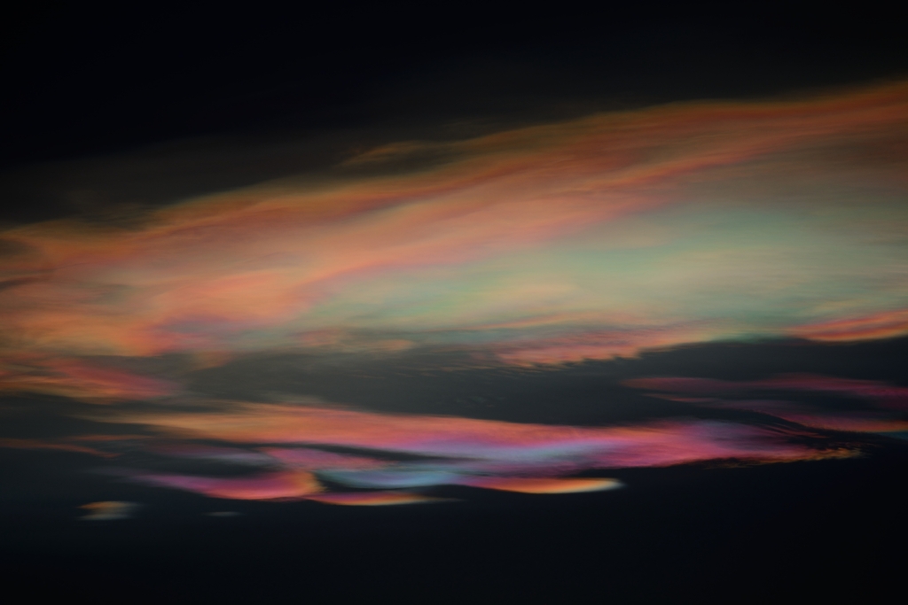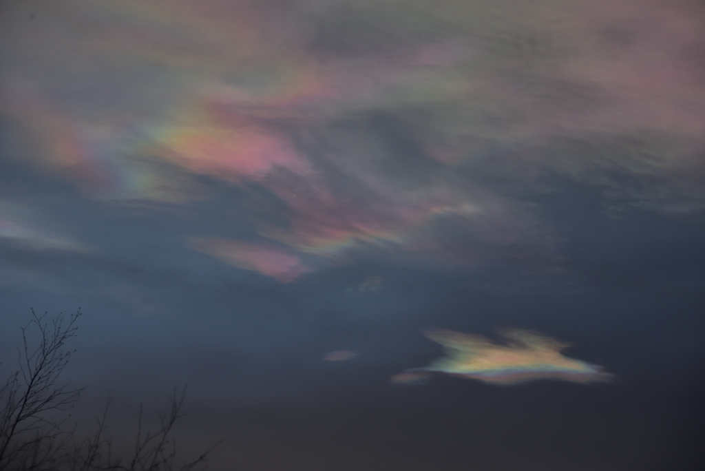 Talveen kuuluvat erottamattomasti helmiäispilvet. Pilvet levittäytyivät suurelle alueelle, niitä nähtiin Keski-Euroopassa asti.
