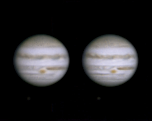 Jupiter on ollut korkealla etelätaivaalla loppuvuoden ajan. Aki Karjalainen kuvasi jättiläisplaneettaa ja teki metkan stereokuvan: