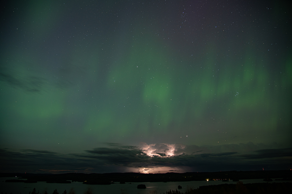 Mipa Parantainen pääsi näkemään hienoa luonnonnäytelmää, kun revontulet ja ukkonen välkkyivät yhtäaikaisesti:
