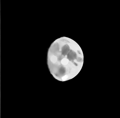 Kuva 28. Kuu paljain silmin nähtynä 11.2.2015 klo 8.40. Oceanus Procellarumin länsireuna on erottunut varsin hyvin, samoin Mare Insularum Copernicuksen ja Keplerin alueiden välissä. Kuva: Matti Helin.